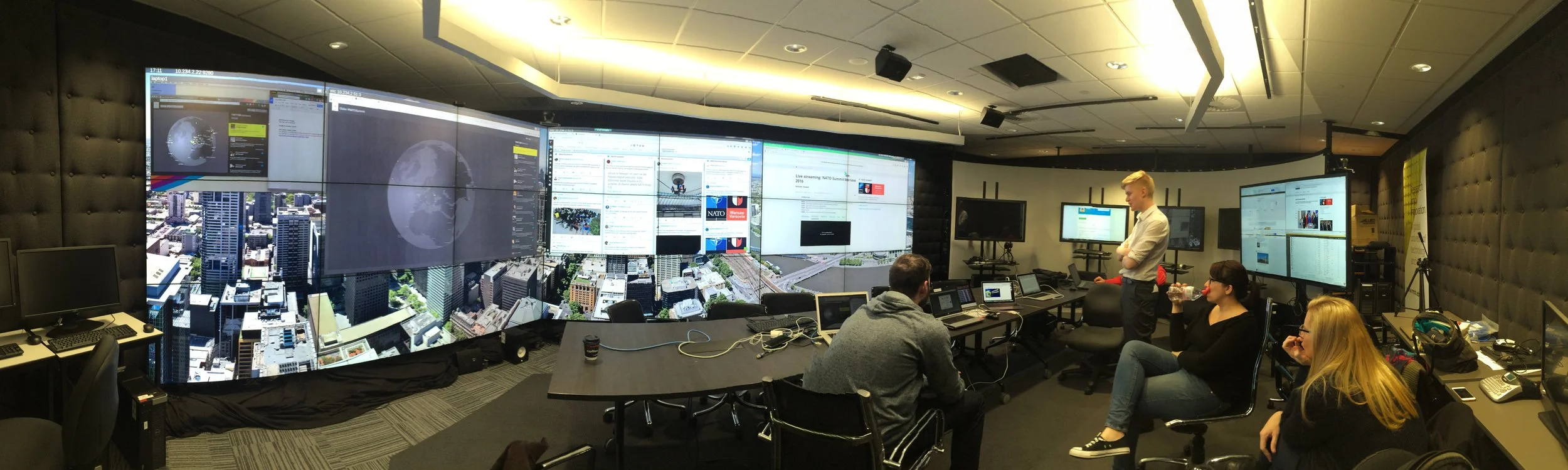 Silently NATO state members filled the room. The screen flashed a spinning globe, tweets from around the world and graphs dancing with trending topics. Ambassador Tacan Ildem opened by thanking us for our hard work, reminding the room of the importance of digital and briefly introduced the project. Steven Mehringer, Head, Communications Services, added to this with a passionate project overview. The audience applauded. Franky Saegerman gives us the nod. And I awkwardly tested the microphone – Show time.